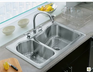 商品编号:K-11825T-2FD 名称:米尔顿大小槽台上厨盆(珍珠银+抗油)