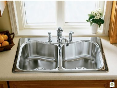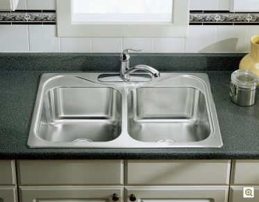 商品编号:K-11825T-2FD 名称:米尔顿大小槽台上厨盆(珍珠银+抗油)